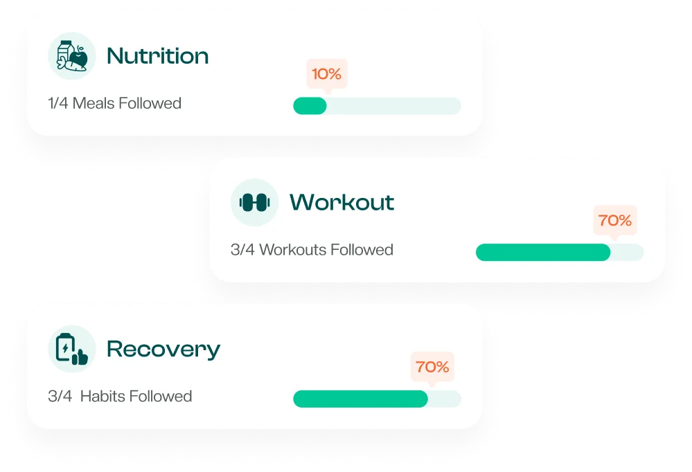 Fully personalized fitness, nutrition and recovery plans that adapt as you progress.