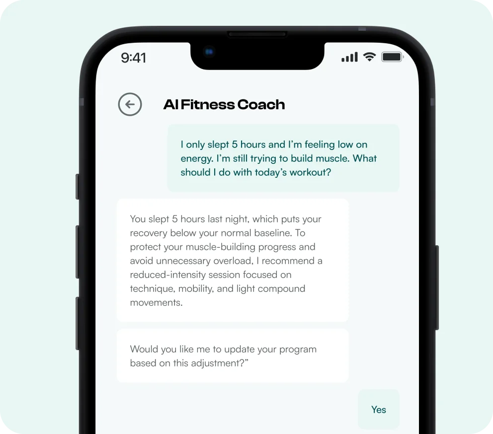 The app learns your habits, adjusts your plan, and guides you with simple workouts, smart nutrition tips, and steady progress built around your real life.